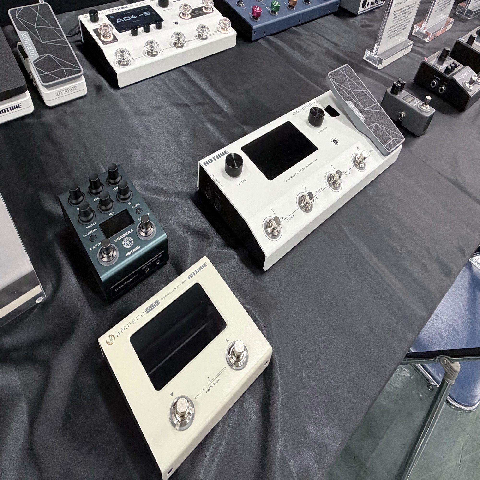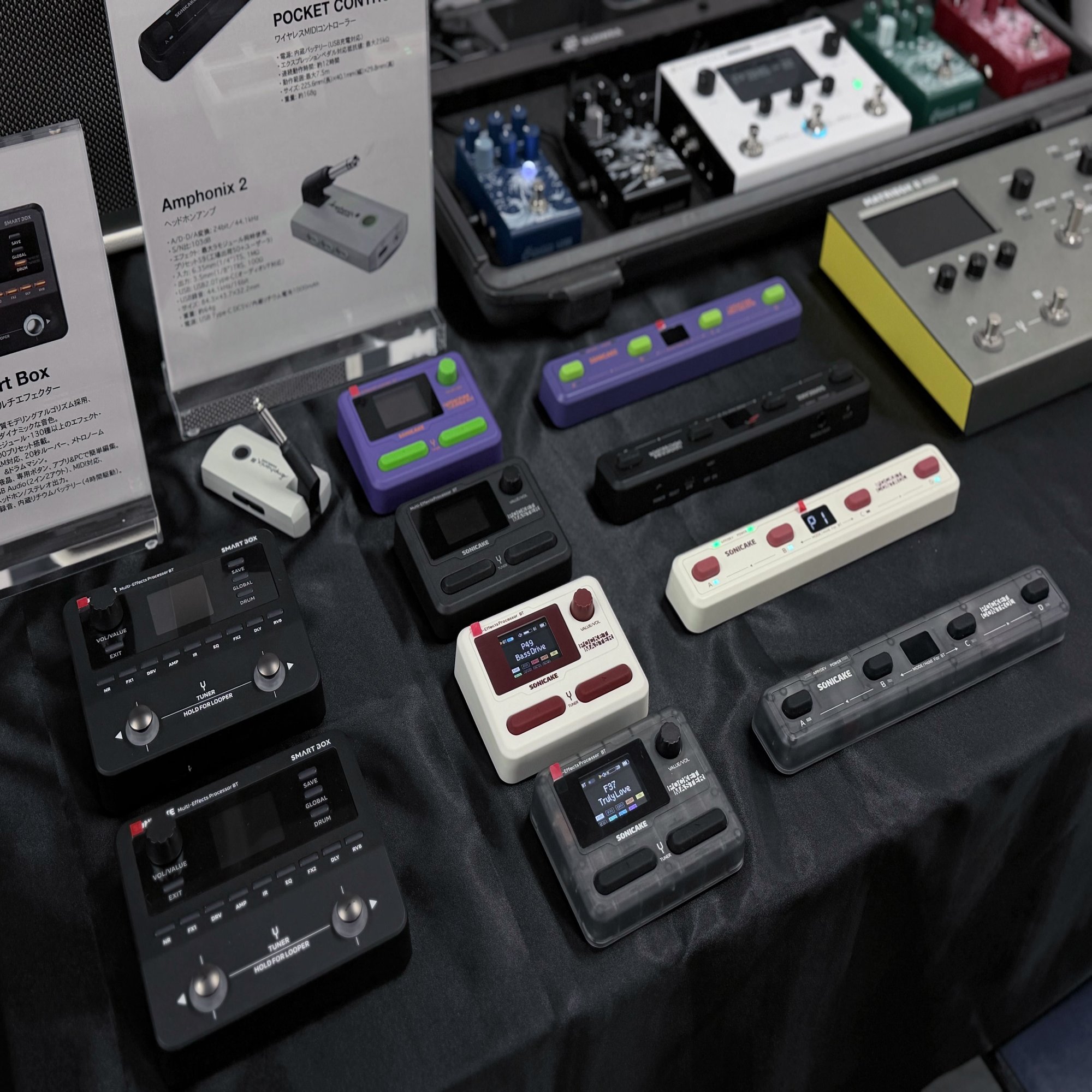 今年のHotone Japanブースでは、大好評頂いているSonicake Pocket Master(ポケマス)はもちろん、新進気鋭のコンパクトエフェクター、Klowraシリーズや、GP-5の上位機種など、多彩な新製品を展示しました!
