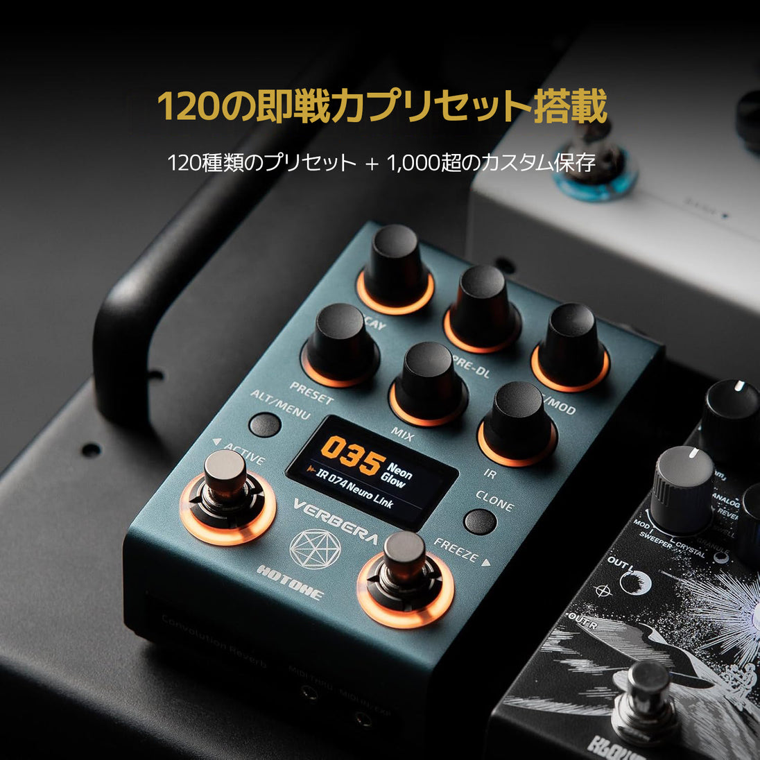 Verberaは、スタンドアロン型のハードウェア・コンボリューション・リバーブ・ペダル。よくあるソフトウェア型リバーブではありません。インスタントIRロード、高い可変性、そして無限のサウンド表現力を備えた全く新しいリバーブペダルです。