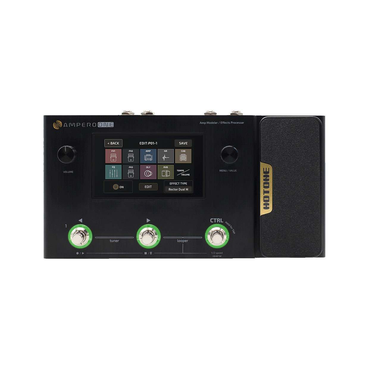 ・244 effects、HOTONE独自のモデリングメソードCDCM HD & F.I.R.E.による完成度が高い64 x Amp、60 x CAB、100 x ご存知のペダル。