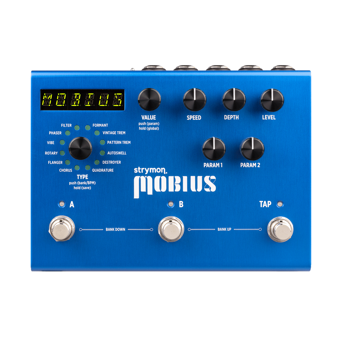 - 5種類のコントロール(SPEED、DEPTH、LEVEL、各プログラム毎にアサインできるPARAM 1&2を搭載)