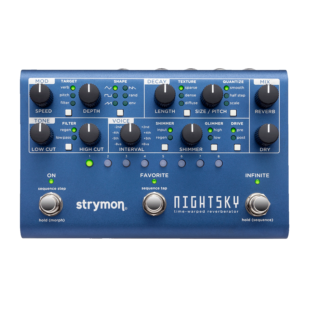 メニューに従うことなく、素早く反応するコントロールノブを調整しながら、深くパワフルなサウンド操作で、新たな実験的なリバーブサウンドデザインを試みることができます。NIGHTSKYは、新しいスタイルのリバーブペダルなのです。