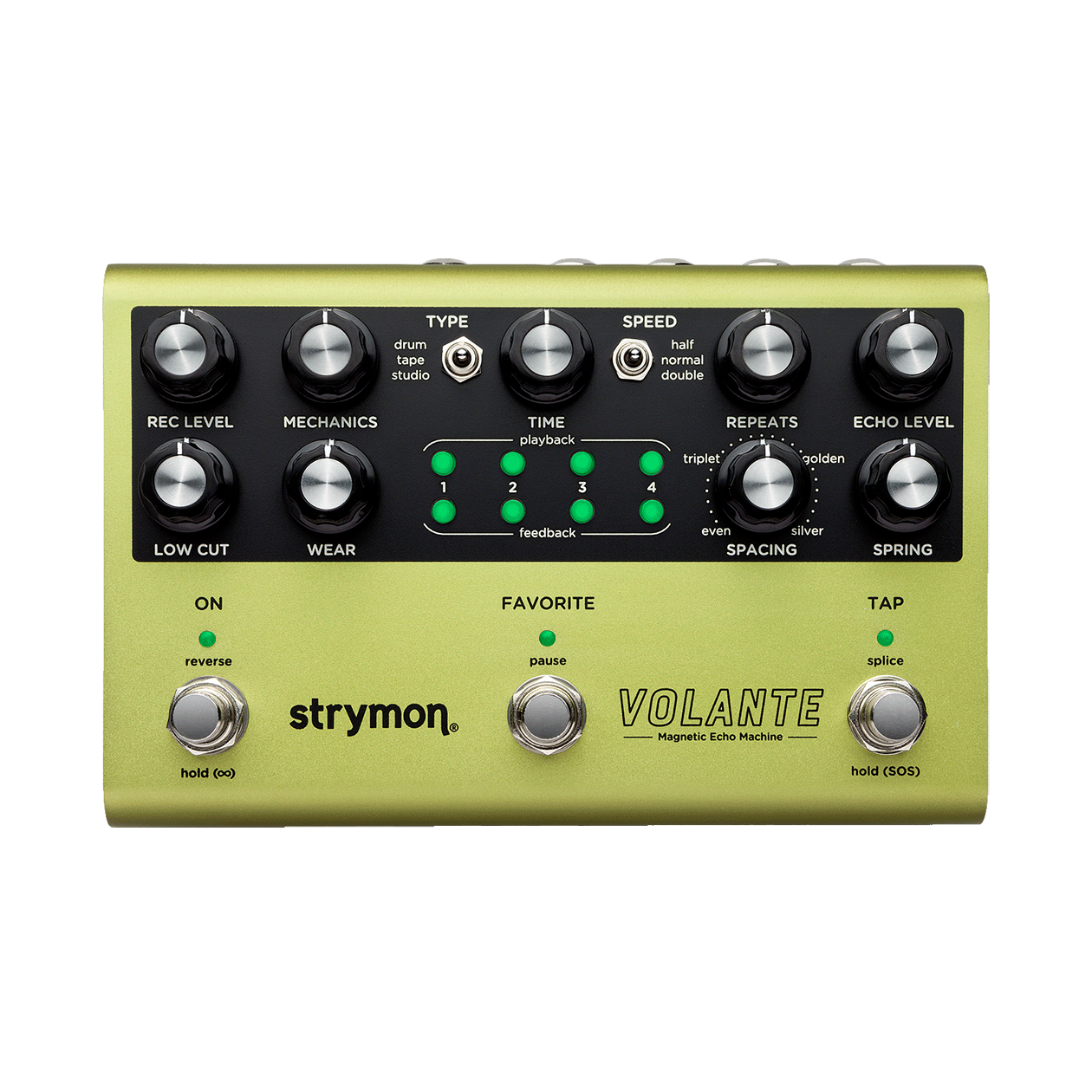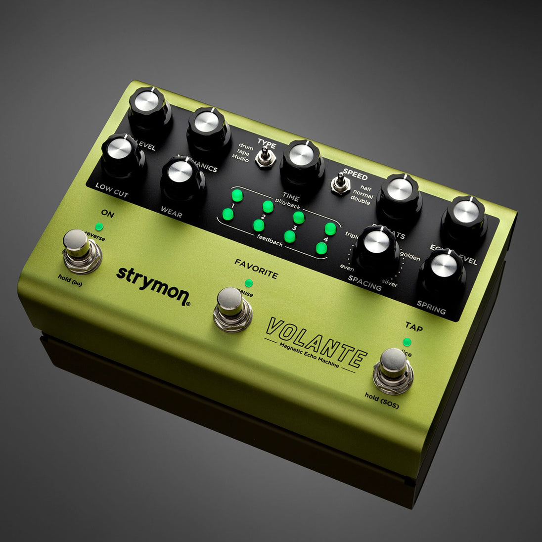 strymonの類まれな高いサウンドクォリティーと直感的な操作性が、あなたのペダルボードを別次元へ導きます。VOLANTEは、マグネティックドラムエコー、テープエコー、スタジオエコーの3つのマルチヘッドディレイに、ルーパー機能とビンテージスプリングリバーブを加え、リミットレスな可能性をパワフルに見せてくれます。