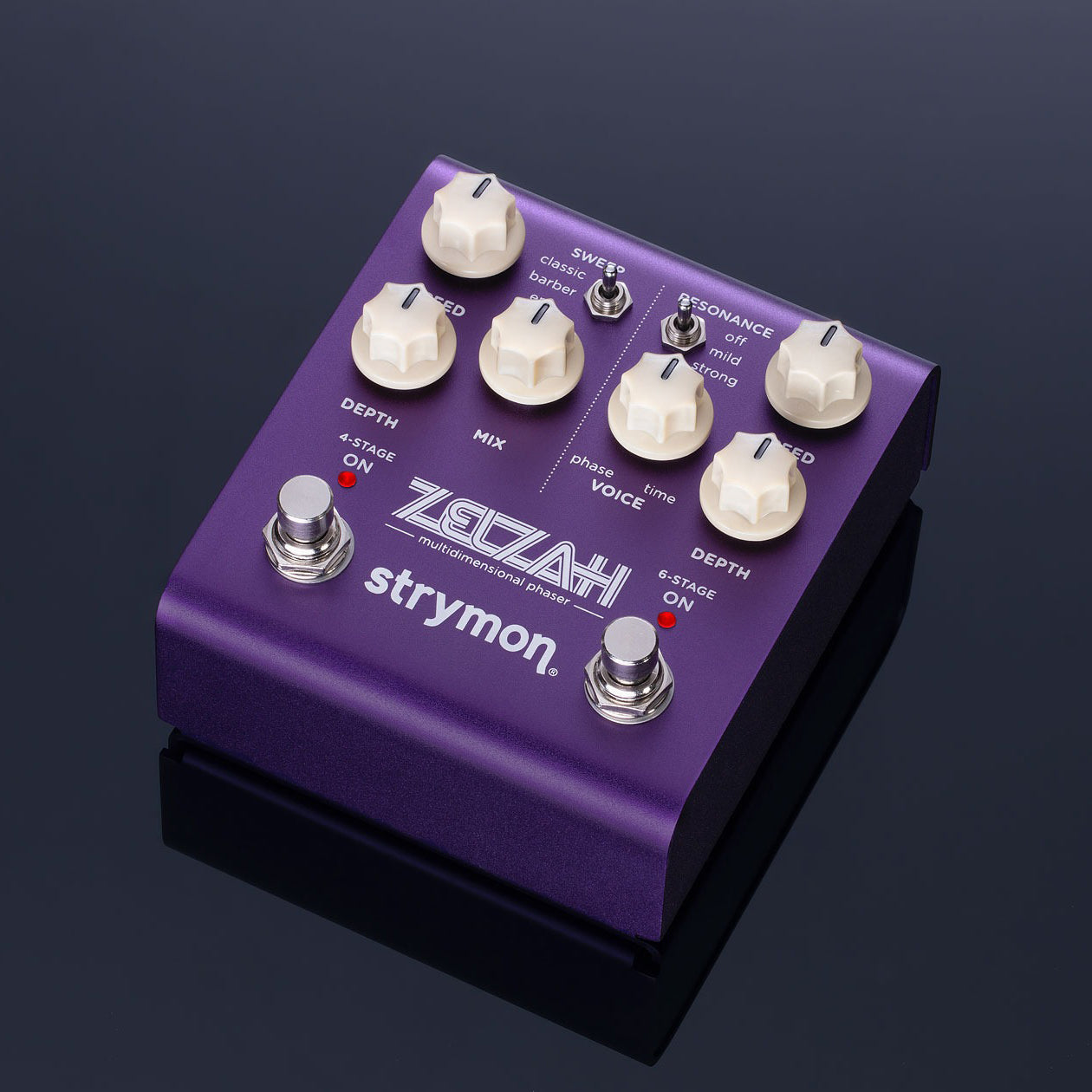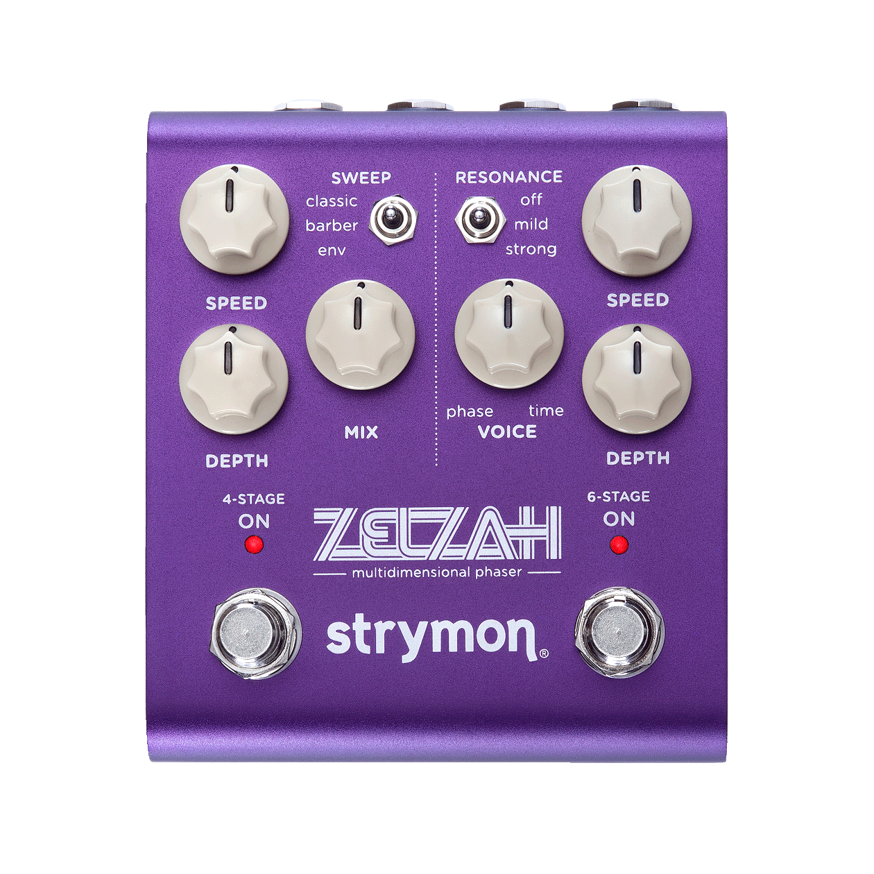 ZELZAHはビブラート、ゴージャスなフランジャーとコーラス、そして、これまでに聴いたことのない新たな音へ、シームレスに導く――多彩なコントロールを備えたビンテージライクな4ステージ&6ステージのフェイザーです。搭載されたすべてのノブを駆使し、この上なく音楽的なトーンを響かせてください。
