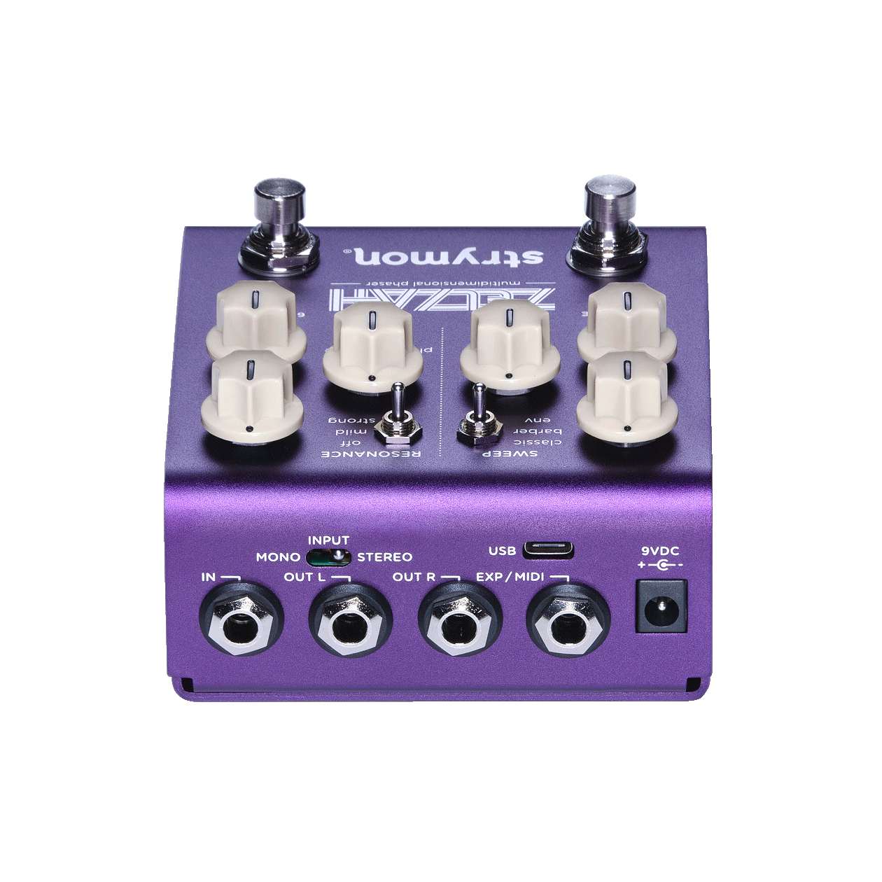 加えて、スプリットモードでは4-ステージフェイザーで左入力のみを処理し、右側の入力は6-ステージフェイザーを処理することも可能です。Zelzahはペダルボード中で最も柔軟なモジュレーションペダルとして使うこともできます。