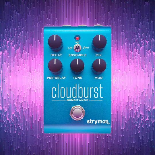 至福のアンビエント空間への誘い 時に、1つのペダルが変革をもたらす場合があります。易しく音楽を引き出し、何時間も魅了させられるような、例えて言えば、トーンを開花させてくれる――cloudburstは、これまでに聴いたことのない最もゴージャスなアンビエントリバーブサウンドを生み出してくれます。このようなペダルは他にありません。 特徴 プレミアム JFET アナログフロントエンド 超低ノイズ、高性能 24 ビット 96kHz AD/DA コンバーター 520MHz ARM スーパースカラープロセッサー 32bit 浮動小数点プロセッシング 20Hz ~ 20kHz の周波数特性 標準的S/N:116dB オーディオ入力インピーダンス:1MΩ オーディオ出力インピーダンス:100Ω 強靭で軽量なアルマイト加工のスカイブルーアルミニウムシャーシ 9V DC 電源 センターマイナス、最小電流 250mA こよなく美しく響くストリングアンサンブル これまでのリバーブペダルからは聴いたことのない、新しい世界へと引き込む魅惑的なサウンドを明らかにしてくれます。Ensembleを僅かに加えて、アンビエントリバーブのサウンドスケープにハーモニー豊かな別世界の奥行きを追加したり、ギター演奏にみずみずしく合成されたストリングセクションのうねりを自由に加えることができます。ギター信号全体にスムーズに、有機的に、そして音楽的に反応し、豊かでレスポンシブで刺激的な演奏体験を届けてくれます。 クローゼットスペースから無限の宇宙へ 複数の異なるリバーブを1つにまとめ、Decayノブの一方の端には自然なサウンドの小さな空間があり、もう一方の端には広大な広がりのある空間が、美しくチューニングされています。このアンビエントリバーブペダルは、Decayコントロールを回すと多数の内部パラメーターが自動的に調整され、1つのノブを回すだけであらゆるサイズの優れたスタジオクオリティのルームリバーブを生み出すことができます。 一切妥協が、そこにはないスモールボックス strymonリバーブペダルに期待されるすべてのプレミアムコンポーネント、サウンドクオリティ、ロードでの価値すべてがcloudburstの新しいコンパクトフォーマットに凝縮されました。ディスクリートJFETアナログフロントエンド、116dBの優れたS/Nパフォーマンス、パワフルなARMスーパースカラープロセッサー、ステレオ入出力、フルMIDIコントロール機能を備えています。比類なき使いやすさと、これまで作成した最高のリバーブサウンドのいくつかを生成するcloudburstは、すぐに、あなたのペダルボードに必要な唯一のリバーブペダルになるでしょう。...通常価格 ¥47,000通常価格 ¥47,000 -