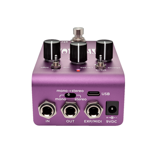 真のバイブ感 歌うように温かくザラッとした質感、モジュレーションへの不規則な泡立ち、うめき、そしてピッキングに対するダイナミックなレスポンス。これらはすべて、真のバイブ体験の特徴です。どのコーラスよりも厚くて骨太で、どのフェイザーよりも繊細な表現をもたらすバイブペダル。これをドライブさせたアンプにつなぐだけで、特別なモジョのようにあなたを解放し演奏に引き込みます。大型で高価な完全アナログのブティックペダルでしか得られない、あの捉えどころのないサウンドを探す旅はもう終わりました。シンプルかつパワフルなコントロールを搭載し、比類のないビンテージバイブトーンを引き出すULTRA VIOLETは、多彩で魅力的なサウンドをすぐに手に入れられる、あなたが探し求めていた真のバイブペダルなのです。 プレミアムなハードウェア 超低ノイズのディスクリートアナログJFET入力回路が、演奏に優れたレスポンスを提供し、モノからモノ、モノからステレオ、またはステレオからステレオI/Oへ、リアパネルのスイッチで切り替えられます。さらに、ARM DSPチップ搭載により、より少ない消費電力で、繊細なサウンドニュアンスまで正確に再現する高い処理能力を可能にしました。 特徴 プレミアムJFETアナログフロントエンド 外部機器との接続によるコントロールが可能なTRS MIDI/Expジャック フルMIDI対応。300のプリセット保存、リアルタイムのパラメータ制御が可能 TRSジャックを介したフルステレオ入出力 DAW MIDI制御およびファームウェア更新のためのUSB-Cを装備 超低ノイズ、高性能 24 ビット 96kHz AD/DA コンバーター 高性能 ARM スーパースカラープロセッサーを採用 32bit 浮動小数点プロセッシング 標準的S/N:116dB 9V DC 電源 センターマイナス、最小電流 250mA ダウンロード strymon Updateソフトウェアの使用についてコンピュータにインストールした後、電源オンのデバイスをコンピュータに接続してアプリケーションを実行します。下記より、ダウンロードするコンピューターに合わせたソフトウェアをダウンロードをしてください。必要システム環境は、MacOS 11.6 以上、Windows...通常価格 ¥44,000通常価格 ¥44,000 -