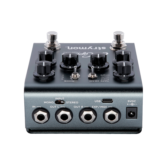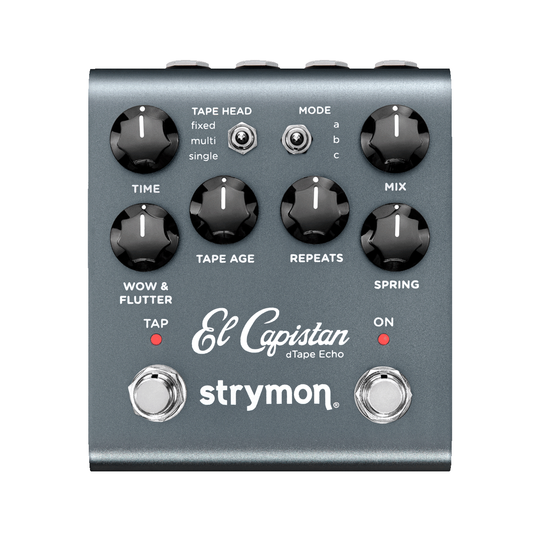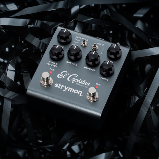 THE NEXT GENERATION. El Capistan V2 3つの異なるテープマシンのタイプを切り替えることができ、それぞれにユニークなモードを備えています。テープの質、マシンの劣化具合、トーンなど細かな音の作り込みまで思い描く通りのサウンドメイクを究めることが可能です。新品のエコーマシンが持つフルレンジの安定したサウンドから、メンテナンスが必要なほどくたびれて不安定なユニットのニュアンスまで再現します。この1台で新品のテープ特有のフルボディのサウンドも、使い古されたテープのノイジ―でくもったサウンドも手に入ります。こだわり抜かれたdTape™テクノロジーとパワフルなARM DSPにより、これまでのテープマシンでは再現し得なかったようなテープマシンエフェクトから、テープスタイルのルーパーエフェクトまで幅広く提供します。本物のテープマシンのようなメンテナンスの心配なく、最新の技術で最高のビンテージ体験をお楽しみいただけます。 特徴 ハイインピーダンス超低ノイズClassA JFETプリアンプ入力 ローインピーダンスステレオ出力 TRSエクスプレッションペダル、strymon MINI Switch、MULTI Switch PLUS、TRS MIDIが接続可能なエクスプレッション入力 コンピューターとのMIDIコネクション、ファームウエアのアップデートが可能なUSB-Cジャック搭載 独立のTAPテンポスイッチとオン/オフスイッチ 300のプリセット保存とMIDIフル対応 超低ノイズ、ハイパフォーマンスの24-bit 96kHz、A/D&D/Aコンバータがもたらす妥協のないオーディオクオリティ ハイパフォーマンス 520MHz ARM スーパースカラープロセッサー 32-bit浮遊演算プロセッシング 20Hzから20kHzのフリーケンシーレスポンス 9VDC(センターマイナス)300mA 真のビンテージを継ぐもの プラグインした瞬間にあの時代のビンテージサウンドが甦ります。本物のテープエコーに特有の暖かみとサチュレーション。コンパクトサイズでありながら、その紛れもない真のビンテージサウンドをペダルボードにもたらします。クラシックなスラップバックエコーからサイケデリックな浮遊感漂うスペイシーなサウンドまで、あらゆるサウンドにリッチな深みを与え、ノブを回すたびに新しいインスピレーションに出会えます。有機的なディレイフィードバックを自由自在に操って、自分好みのサウンドが簡単に見つかります。スプリングリバーブで空間の響きを究めたり、幾重にも重なるアンビエントなサウンドスケープを生み出したり、テープスタイルの多重録音を可能にするルーパーとして演奏に幅をもたらしたりと使い方は無限大です。El Capistanをペダルボードにセットすれば、きっと新しいアイデアが湧いてきます。 クラシックなサウンドを最先端にアップデート オリジナルと同じリッチなマグネティックテープエコーのトーンを持ちながら、最先端の技術、研ぎ澄まされたハードウェアとデザインをまとい、ステージやスタジオのパワフルなツールとしてだけでなく、どんな場面でも柔軟に対応できる使いやすさも兼ね備えています。 Springノブかつてのテープエコーマシンの中には、限られた帯域幅に合わせて調整された、小さなスプリングリバーブタンクを備えているものがありました。そのビンテージの雰囲気を高い次元で再現する独自開発のアルゴリズムによって、上質できらびやかなテクスチャを備えた、リアルなスプリングリバーブに仕上げました。...通常価格 ¥62,800通常価格 ¥62,800 -