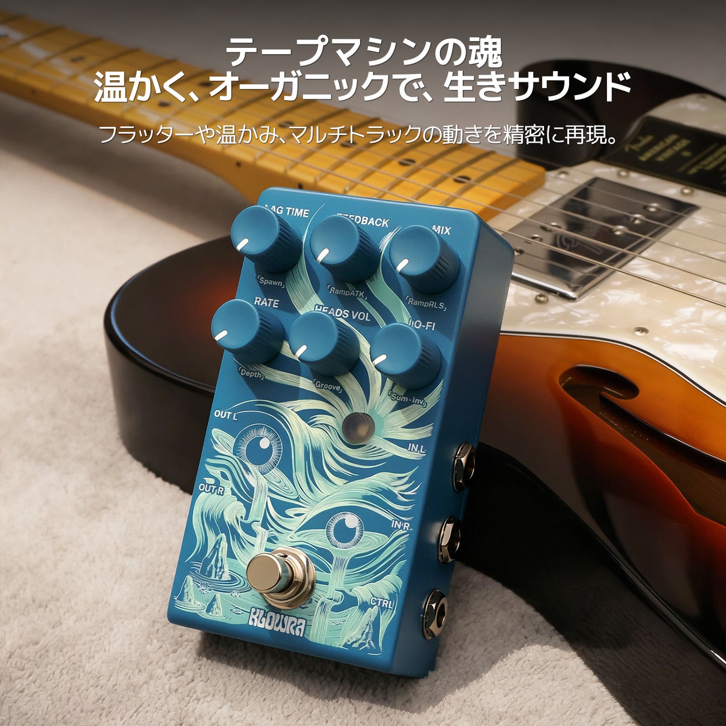 かすんだフェーズの呼吸の干渉、ランダムなフラッターの有機的な生命力、アナログサチュレーションの温かく柔らかな質感までを捉えます。まるで生きたマルチヘッドテープマシンが足元で目覚めるかのようです。